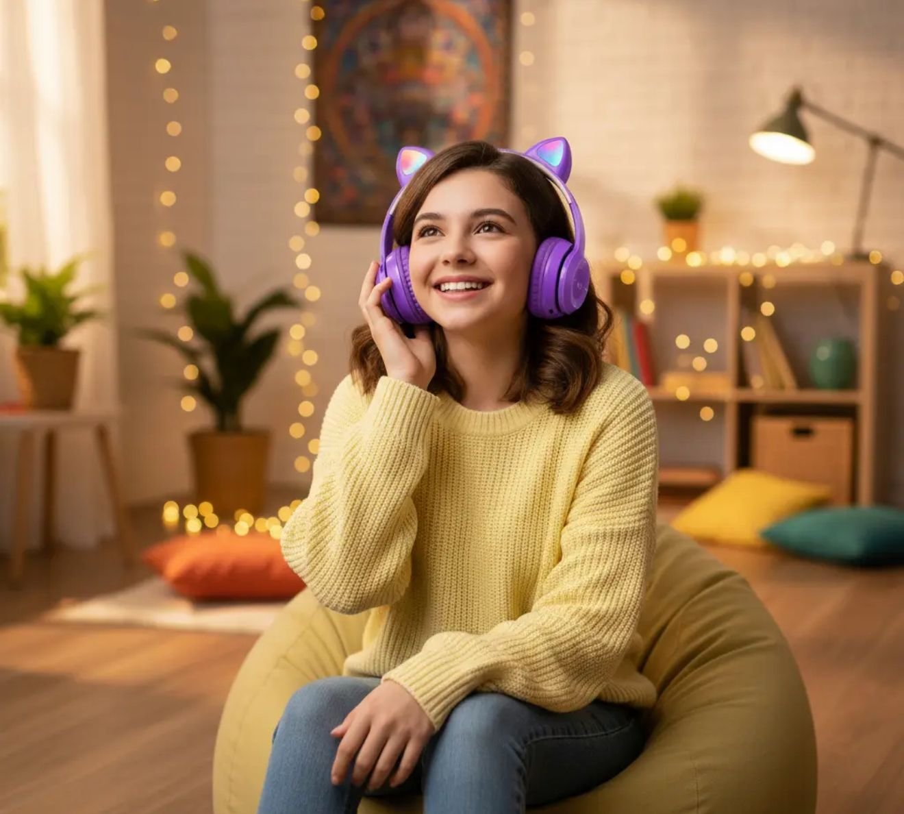 Auricular inalambrico cat con luz lila