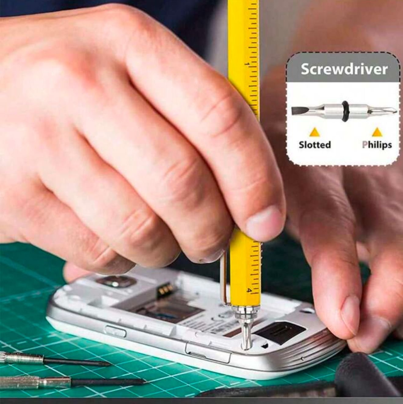 Con bolígrafo, destornillador con dos puntas diferentes , nivel, regla, parte touch para todas las pantallas táctil