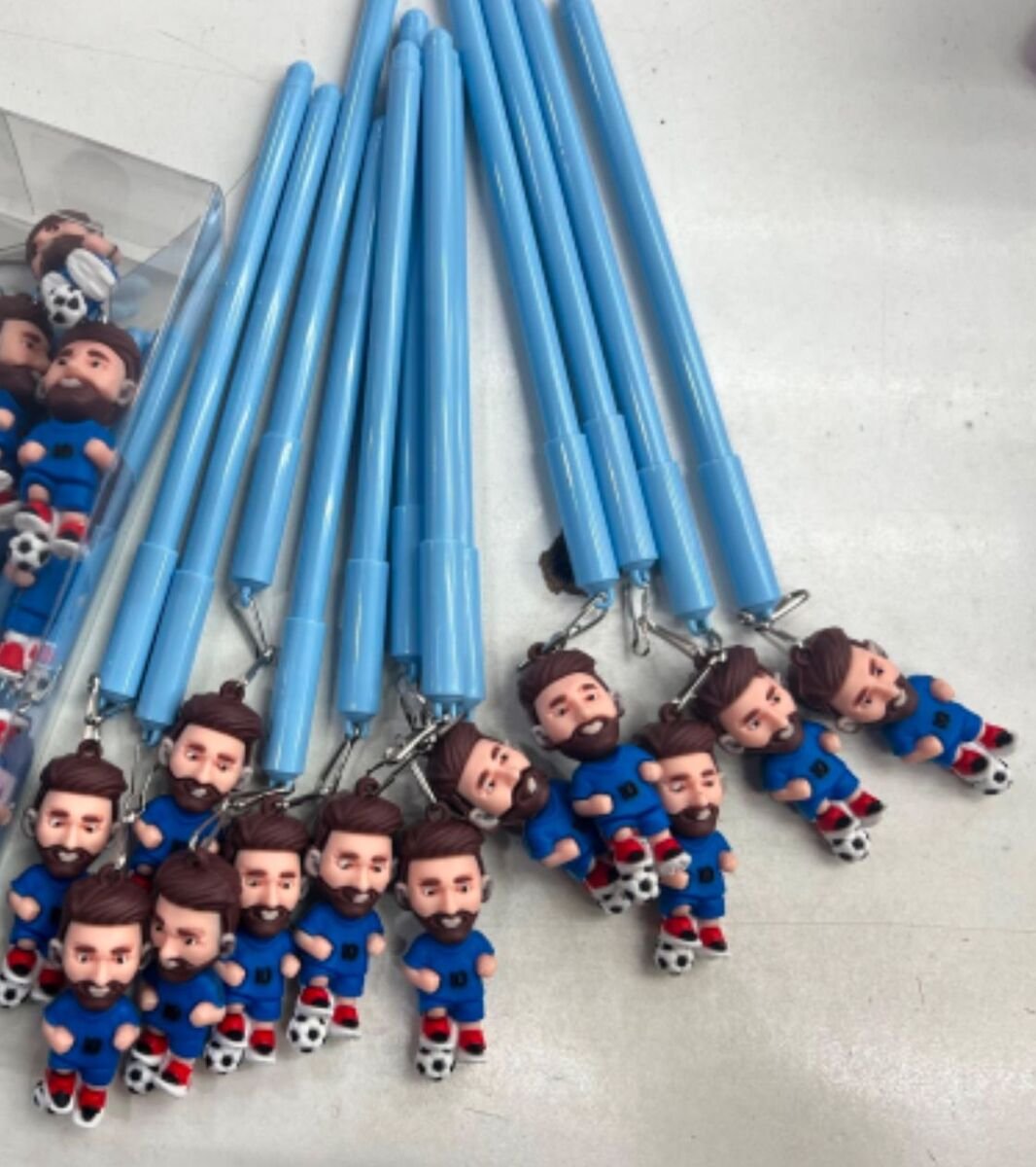 Lapiceras de messi + muñeco de goma