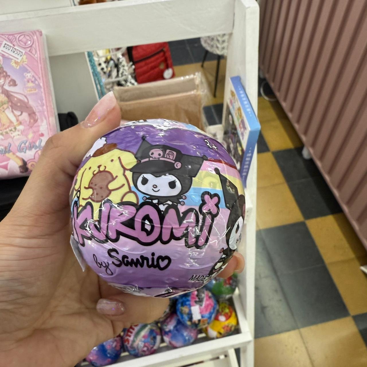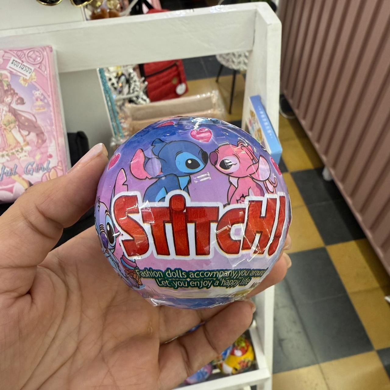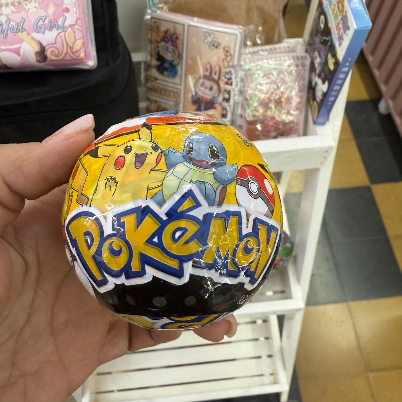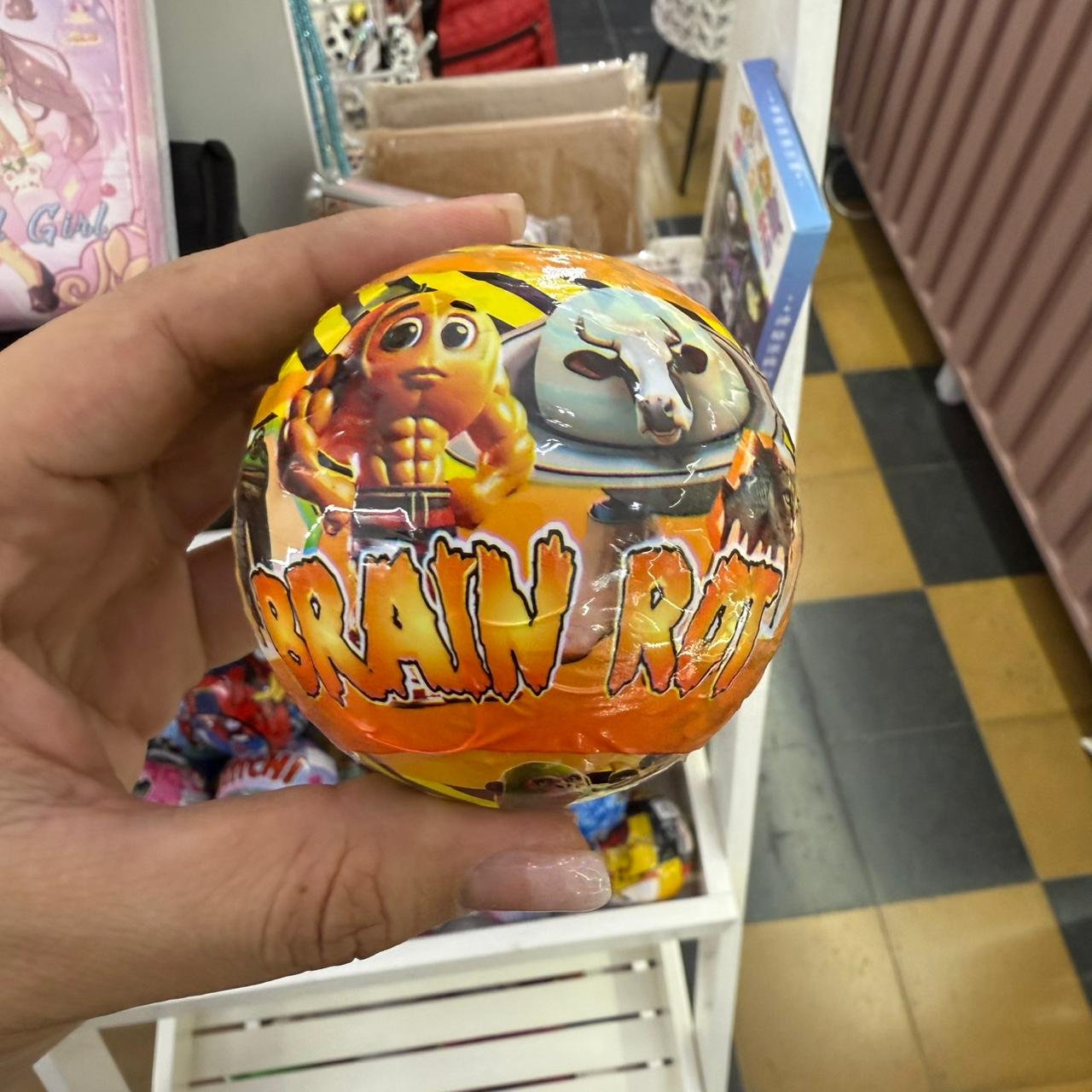 contiene en su interior un muñeco de goma y stickers
