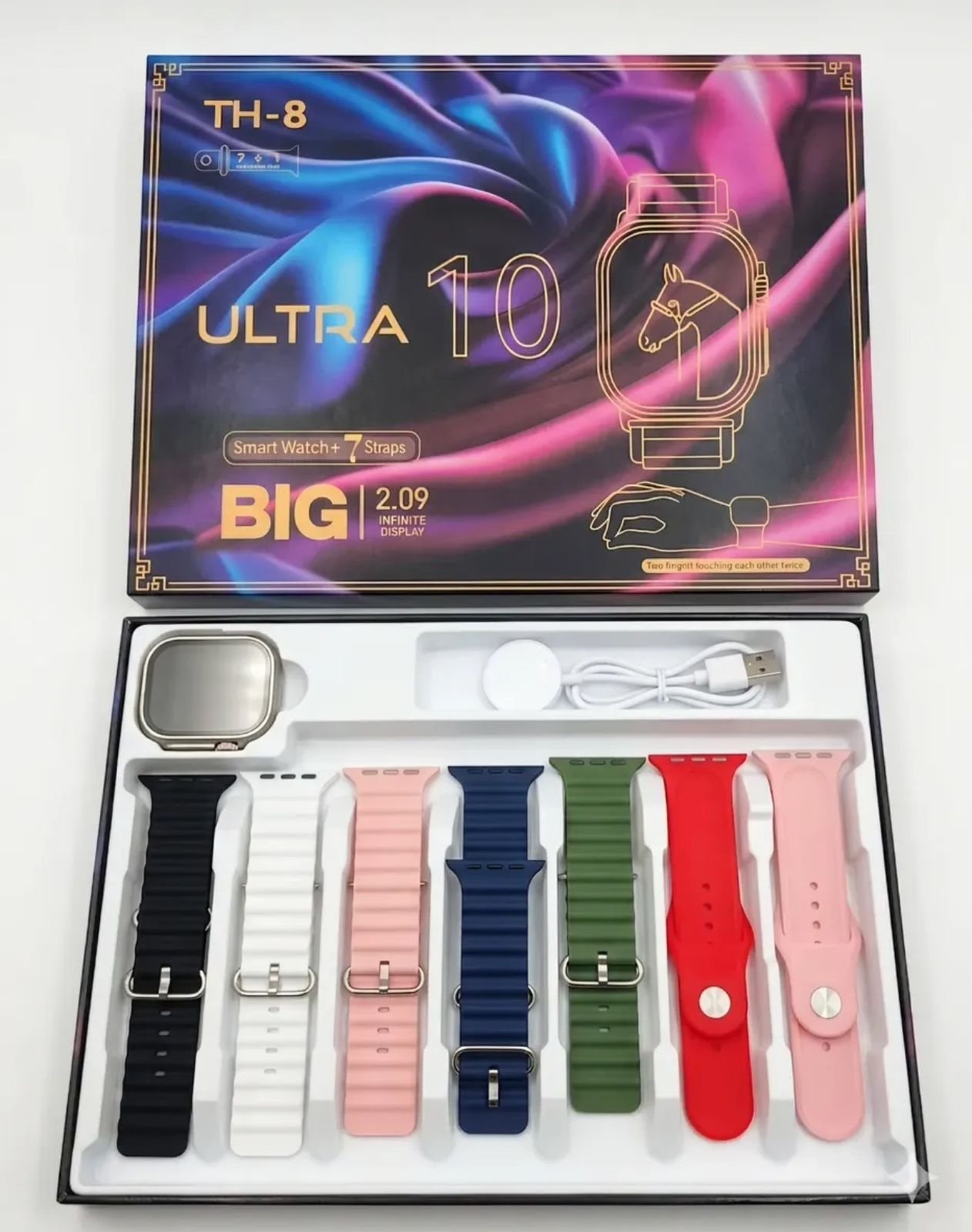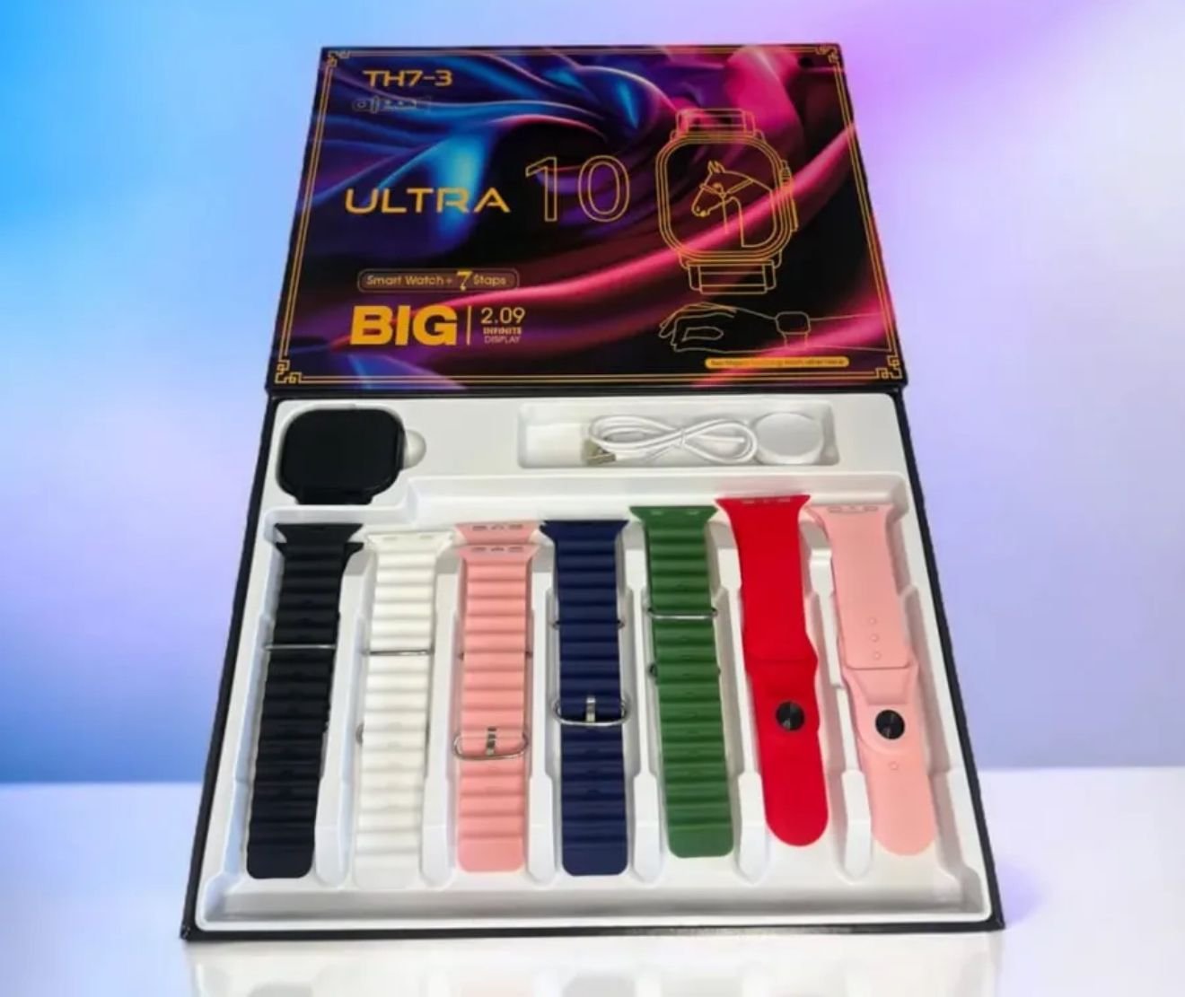 El Smartwatch Ultra 10 TH8 es la elección perfecta para quienes buscan un dispositivo versátil y funcional. Con su pantalla táctil LCD, podrás acceder fácilmente a todas las funciones que este reloj inteligente ofrece. Su diseño moderno y elegante se complementa con un pack de 7 mallas de silicona, permitiéndote personalizar tu estilo según la ocasión.